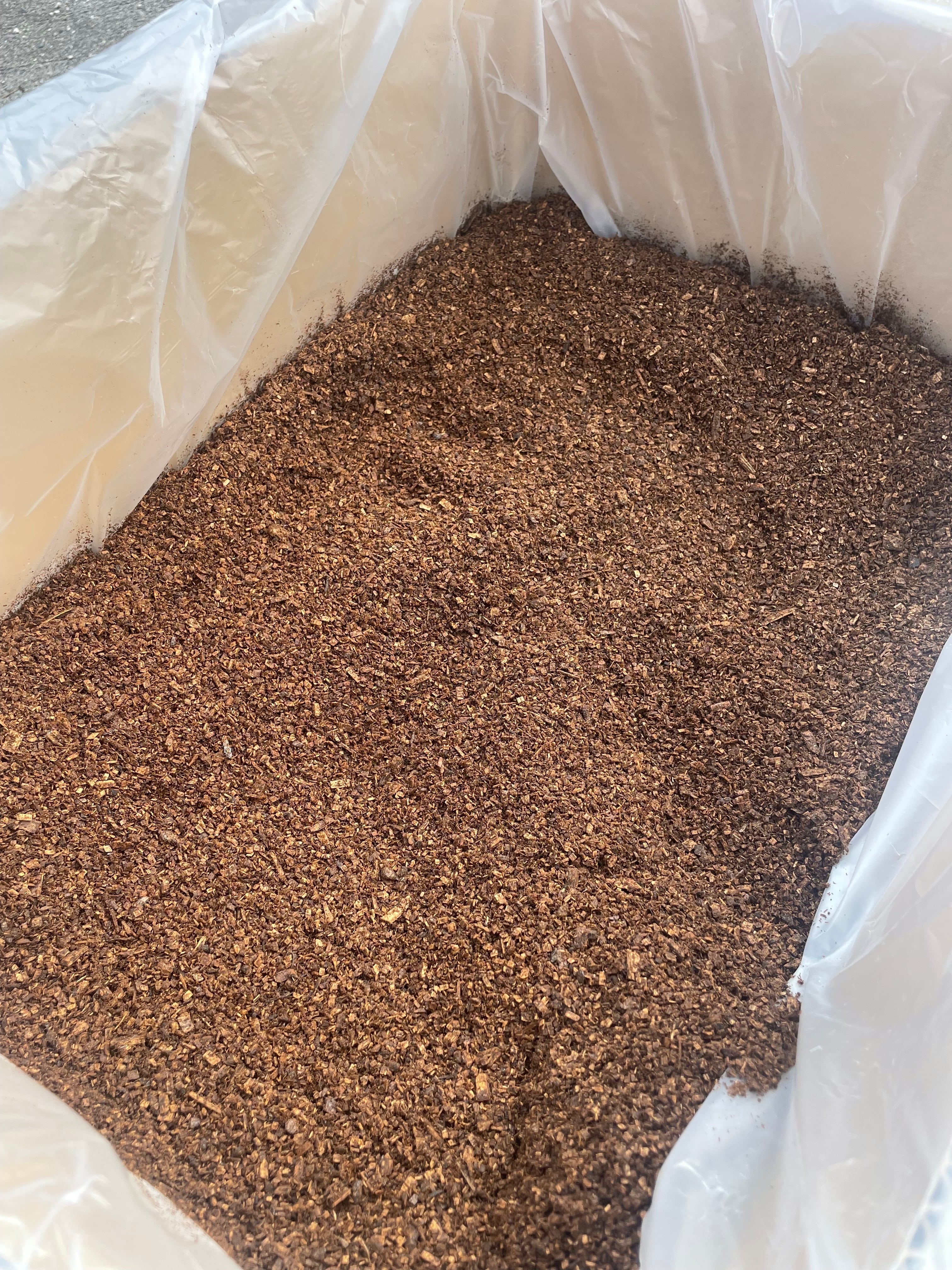 ●キノコ栽培用菌床を再利用した、広葉樹100%添加発酵マットになります。クヌギ ナラ ブナ粗めオガ~微粒子オガをミックスしております。